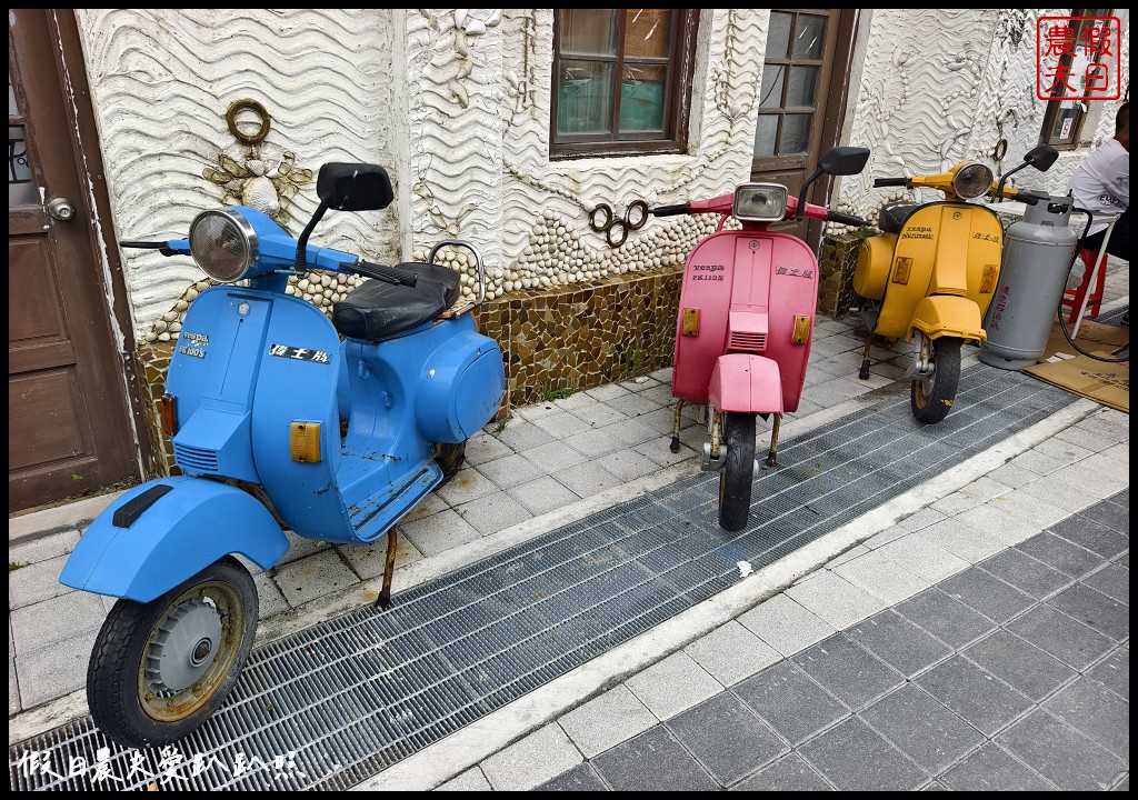 錢來也雜貨店外面有彩色的桌椅、復古的機車都很好拍