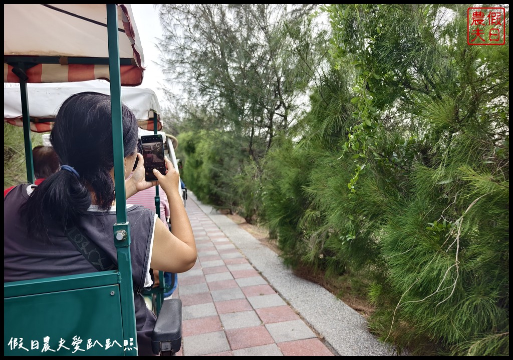 搭乘遊園小火車往水晶教堂路上會經過一段綠色廊道,二旁是防風的木麻黃