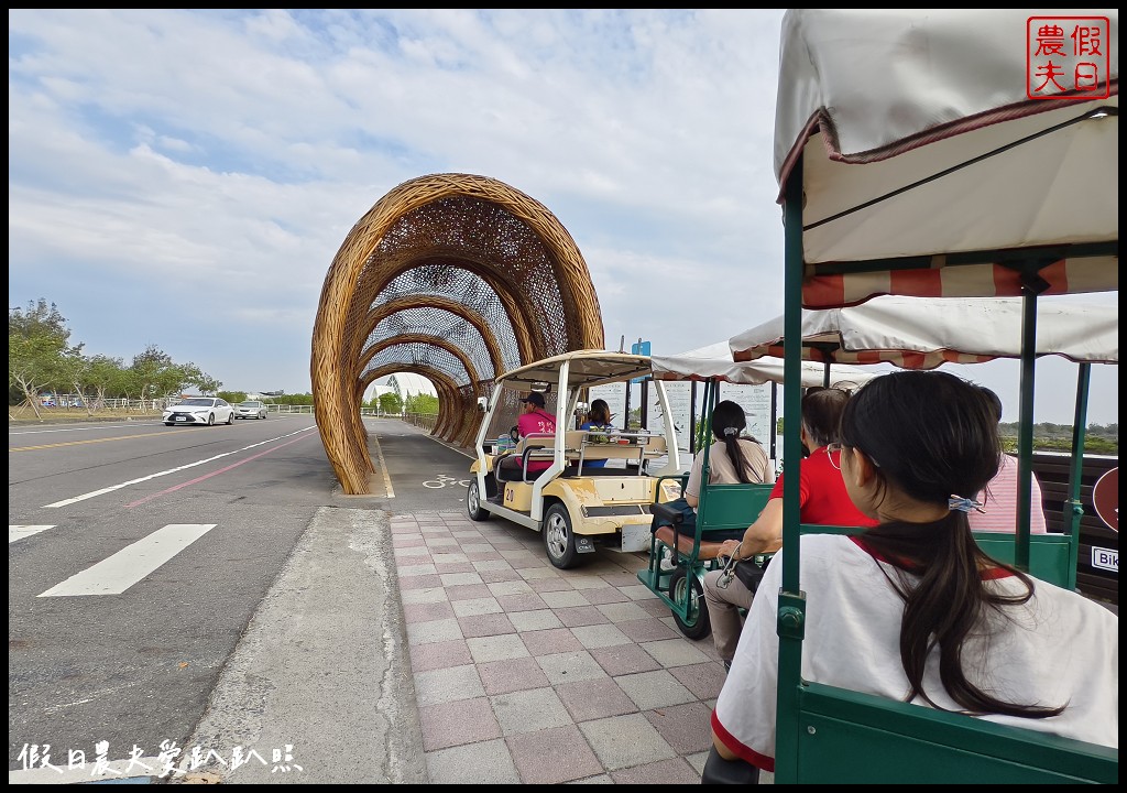 還會經過地景裝置藝術〈彈塗魚籠竹隧道〉,是以北門早年的彈塗魚產業歷史為靈感,依早期竹編彈塗魚籠的六角孔編織法打造而成。