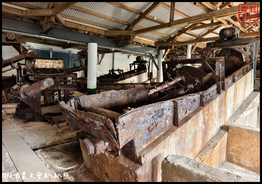 洗滌鹽觀光工場保留原木構屋頂結構,裡面放置日治時期保留至今的洗滌鹽器具,如果是團客來,會安排導覽解說,讓大家更認識台灣的製鹽歷史