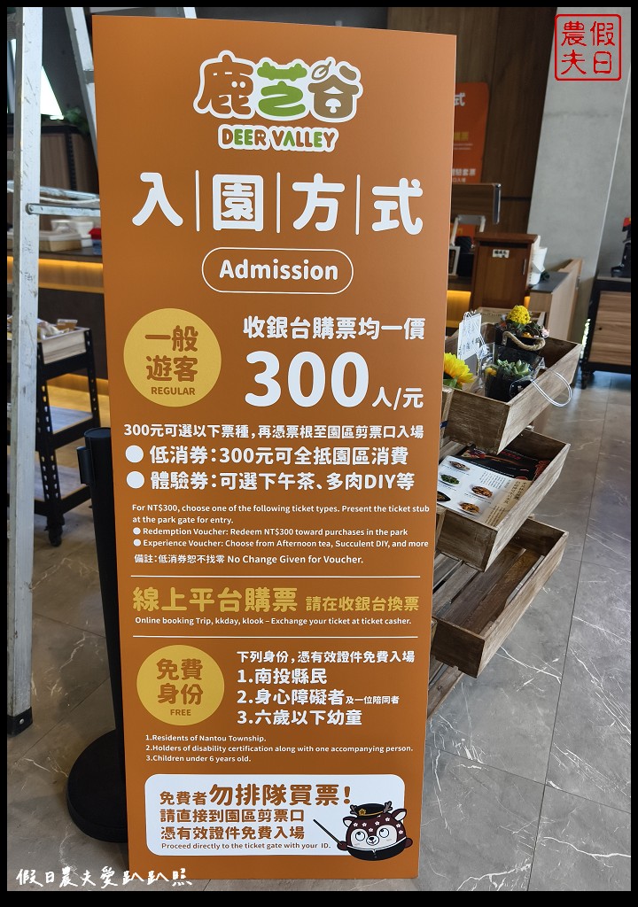 鹿芝谷入園需購買300 元低消券,可在鹿芝谷與菇神餐廳內全額折抵,不管是伴手禮、茶飲、火鍋餐點、多肉DIY體驗都可以折抵