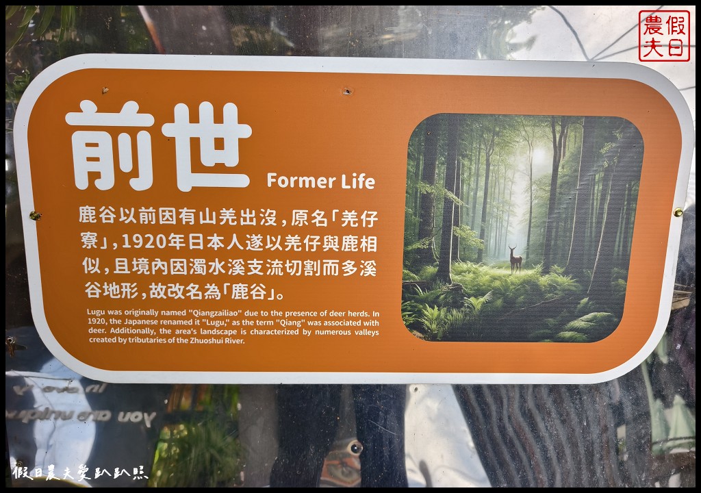 還有介紹鹿谷地名的由來,鹿谷舊名稱為「羌仔寮」,因早期為野生羌群棲息地,後因日治時期日本人認為羌與鹿外形相似,且境內多溪谷地形,便將「羌仔寮」改名為「鹿谷」
