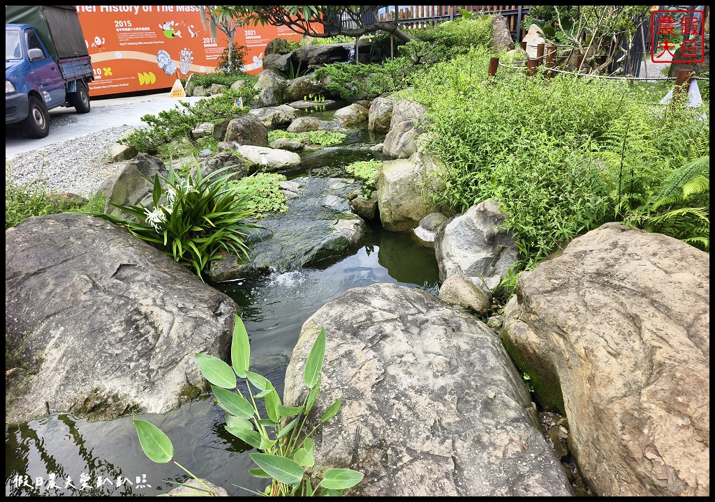 園區裡有一條小橋流水,可以從上面的石頭走過去,小溪流上生態豐富,可以看到很多蜻蜓