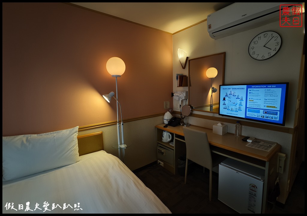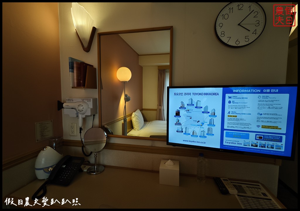東橫inn的房間都佈置得差不多,房間的擺放、床頭燈、衣架和棉被顏色幾乎都一樣,不過這間房間比日本的大一些,行李可以很容易打開,也可以收納到床下(查優惠房價,釜山住宿)